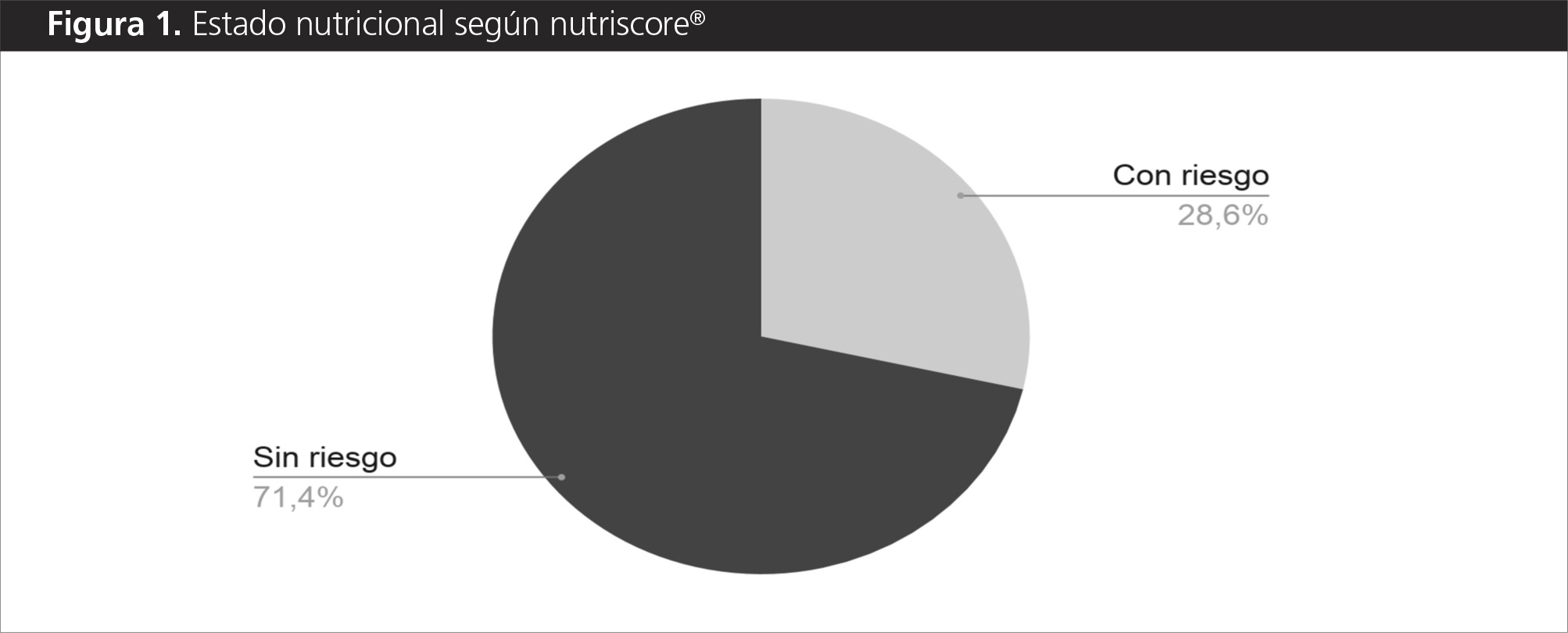 De acuerdo con el NutriScore®, 30 pacientes (28.6%) tenían riesgo. (Figura 1)