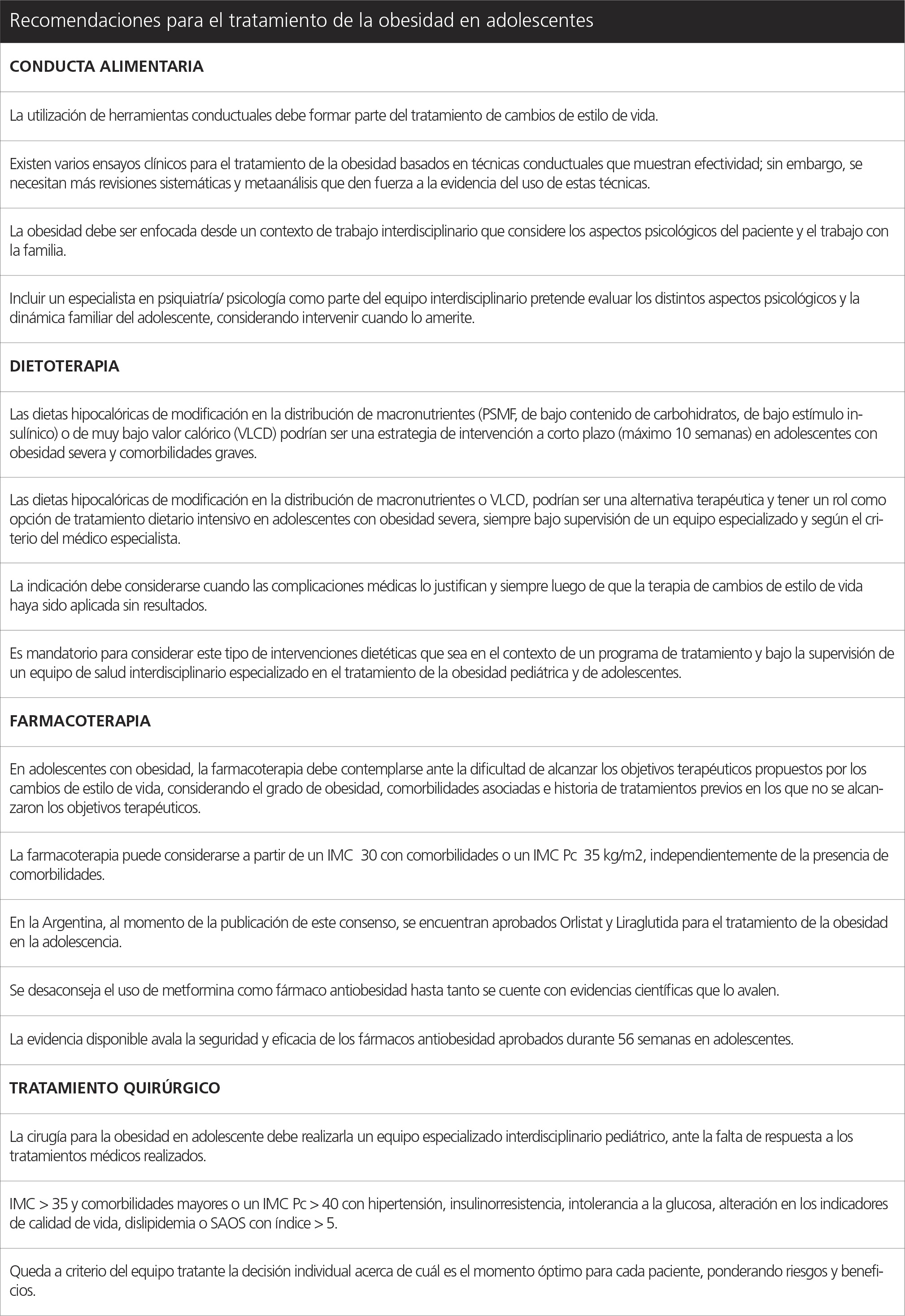 CONSENSO INTERSOCIETARIO PARA EL TRATAMIENTO DE LA OBESIDAD EN ADOLESCENTES EN ARGENTINA