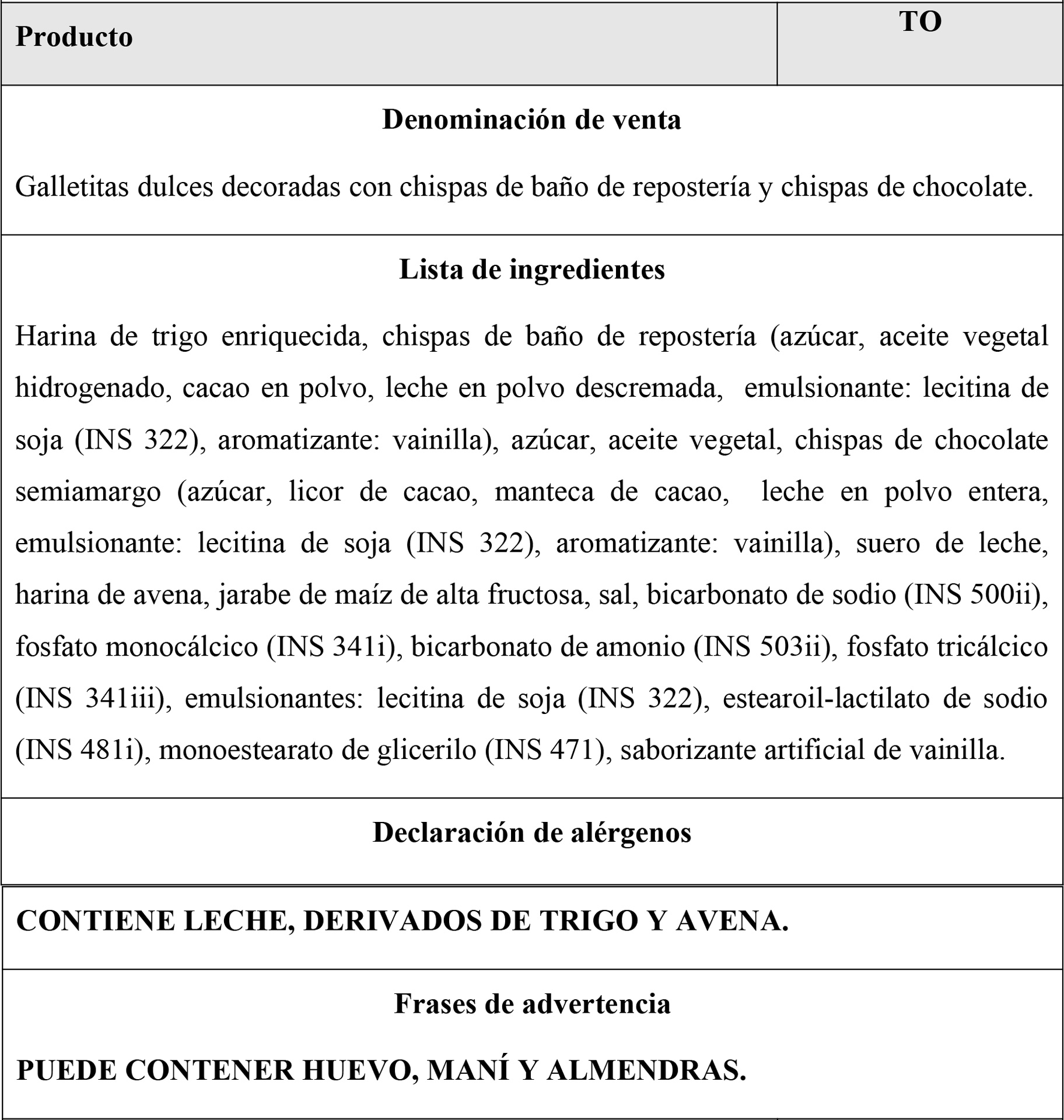 El producto TO cambió la declaración al incluir la soja. El emulsionante INS 322 estaba presente tanto en la lista de ingredientes del producto de 2019, como del 2022. La FA no se modificó.