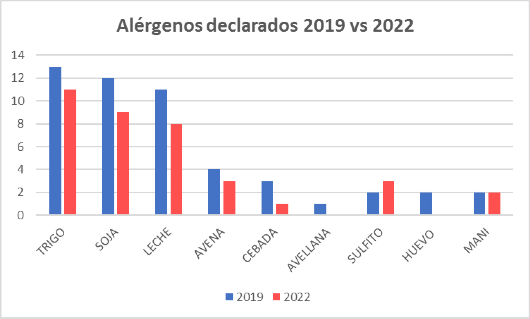 El objetivo de nuestro trabajo fue evaluar cómo las distintas empresas se fueron adecuando a la legislación vigente sobre alérgenos en Argentina mediante un relevamiento realizado en 2019 y 2022.