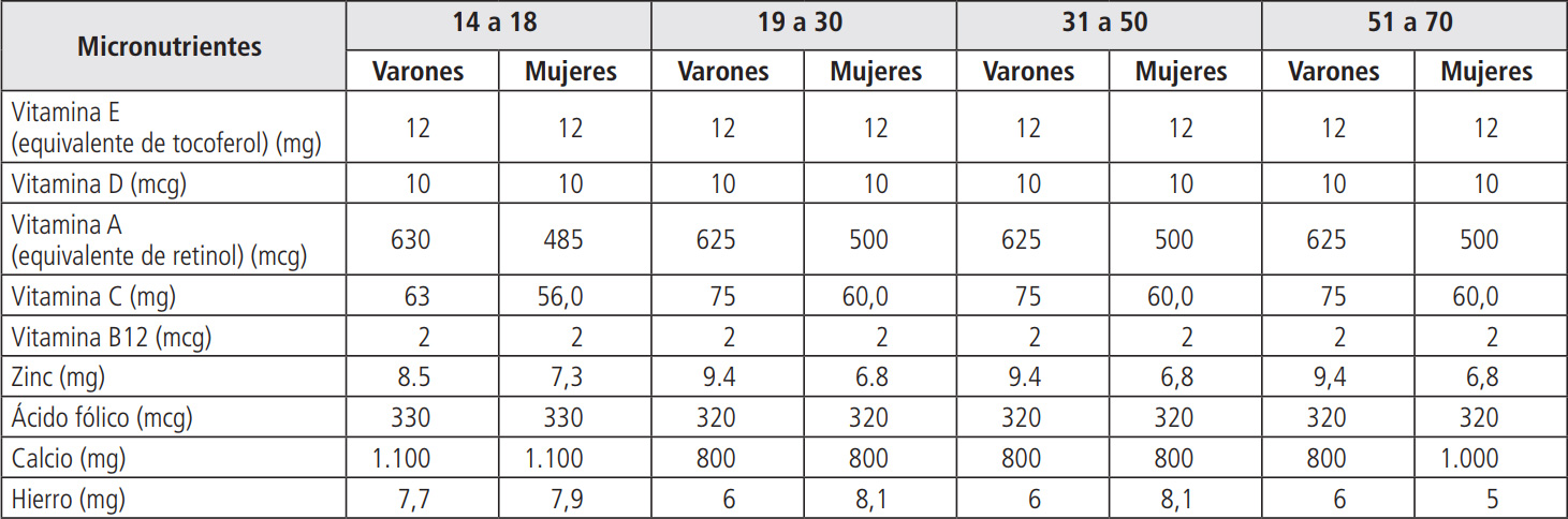 calcio, ácido fólico y vitamina B12 fue mayor para las mujeres. El