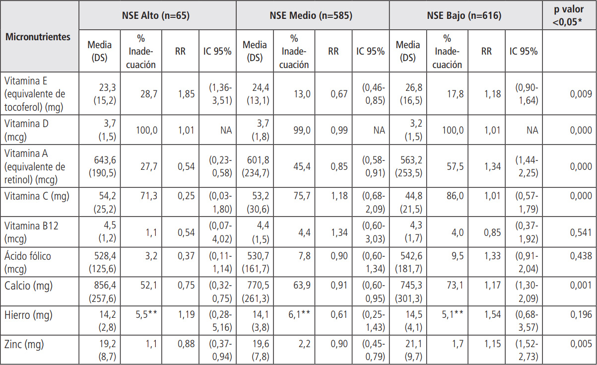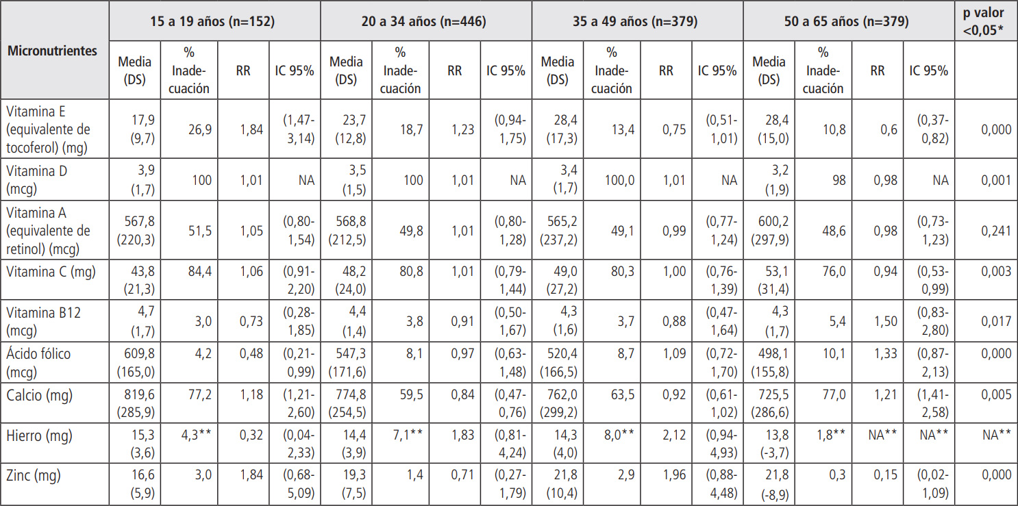 Resultados: el riesgo relativo (RR) de inadecuación de ingesta de