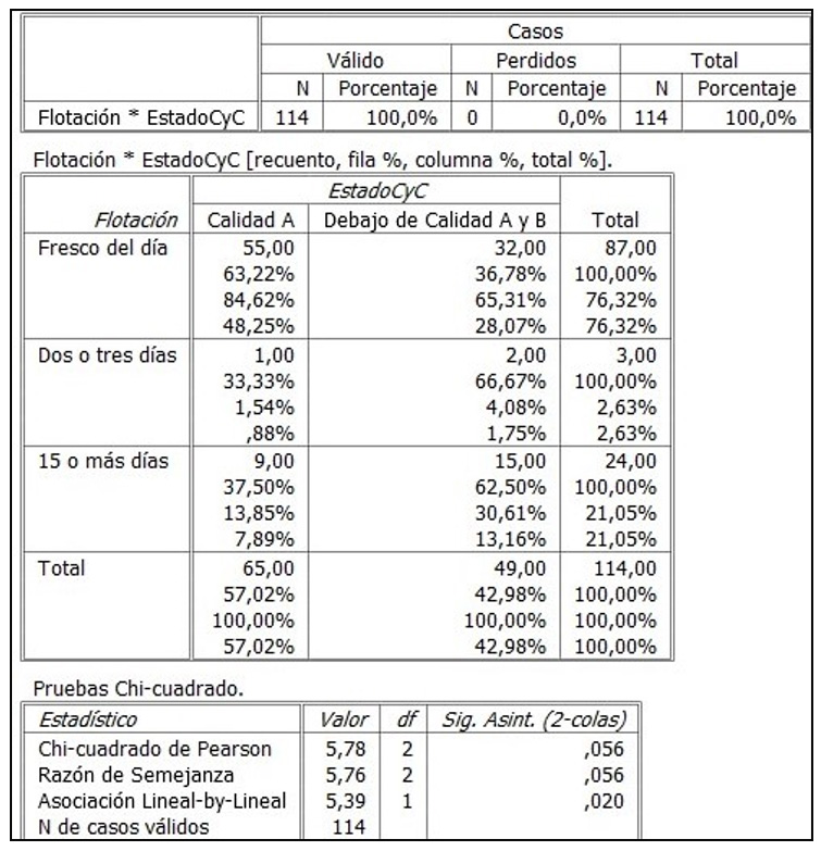 | Figura 1: Chi - cuadrado para la flotación y el estado (cáscara y contenido).