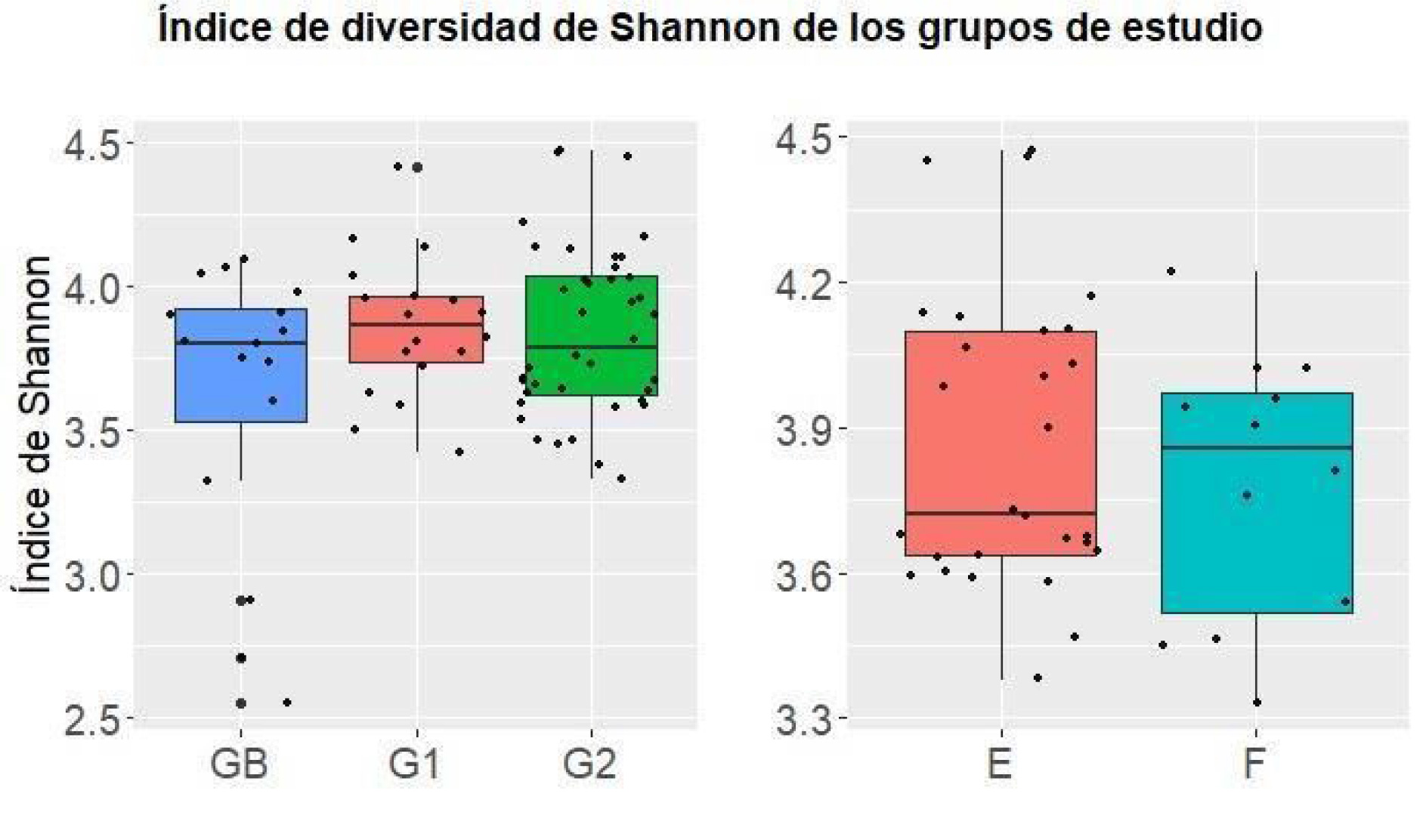 Figura 2: Diversidad alfa de las muestras de cada grupo evaluadas por índice de Shannon