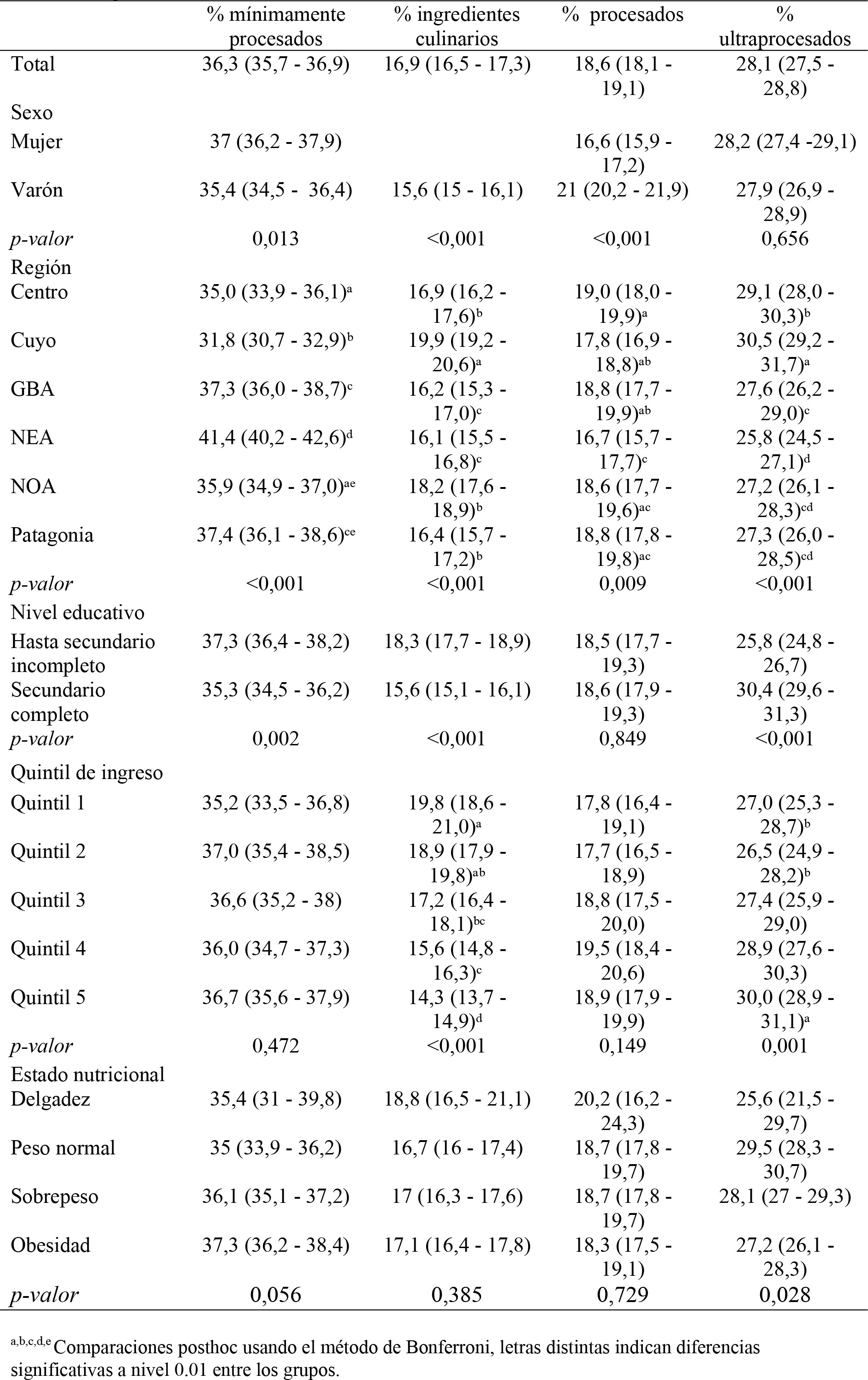 | Tabla 2: Consumo de energía según clasificación NOVA y características sociodemográficas |