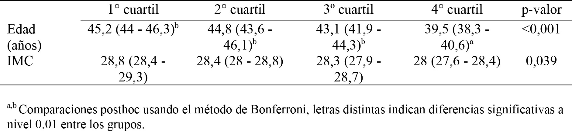 | Tabla 3: Edad e IMC según cuartiles de consumo de energía de alimentos ultraprocesados |